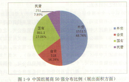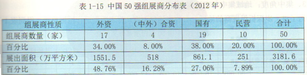 對上表數(shù)據(jù)進行挖掘整理得到表1-15,則能夠更加清晰地看到中國本土組展商(包括國有和民營)與外資組展商之間的差距。