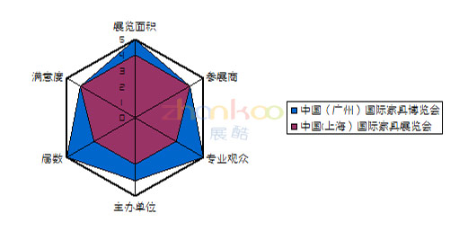 首先我們從六個指標(biāo)來看兩個展會的實(shí)力如何?從圖可以看出,廣州展略勝一籌。