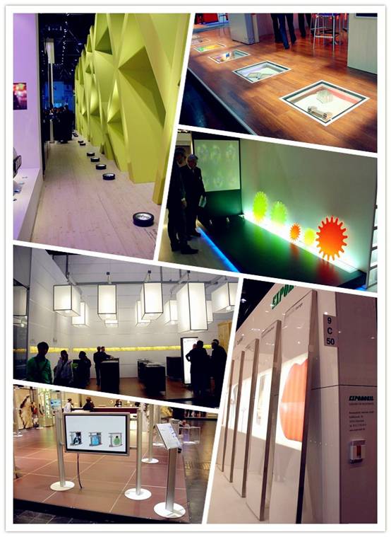 仔細(xì)觀察我們可以發(fā)現(xiàn),在廣州展覽會中直線的存在形式較多,包括單獨(dú)存在的各類直線、三角形、方形、多邊形等,它們分布在展廳空間中的每一個(gè)位置,如墻面、地面、展架、展臺、廣告宣傳牌、天花板、展品、展板等。展覽設(shè)計(jì)師必須將這些形態(tài)各異的直線與商業(yè)展覽空間進(jìn)行有機(jī)地結(jié)合,使它們成為統(tǒng)一、和諧的整體,以達(dá)到有效的烘托展覽形象,增強(qiáng)展覽空間的藝術(shù)表現(xiàn)力,提高展覽空間的使用功能等目的。此外,設(shè)計(jì)師還應(yīng)該把直線的運(yùn)用與展覽空間的使用功能密切結(jié)合,并且能夠適應(yīng)制作工藝的需求,發(fā)揮展覽設(shè)計(jì)中所用物質(zhì)材料的性能,盡可能的節(jié)省成本,最終展現(xiàn)出良好的視覺效果,從而實(shí)現(xiàn)客戶的商業(yè)目的。