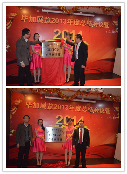 在畢加展覽2013年度總結會議結束后,畢加展覽2014新年晚會正式開始。首先,進行了畢加展覽成為廣東輕工職業(yè)技術學院產(chǎn)學研基地的揭牌儀式,這象征著畢加人才隊伍建設邁上了一個新的臺階。