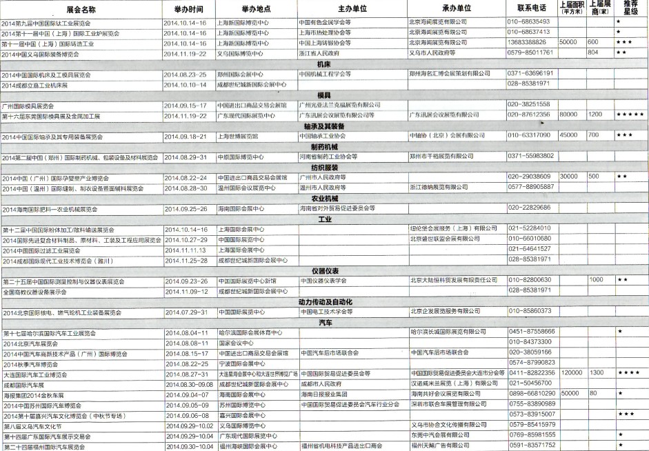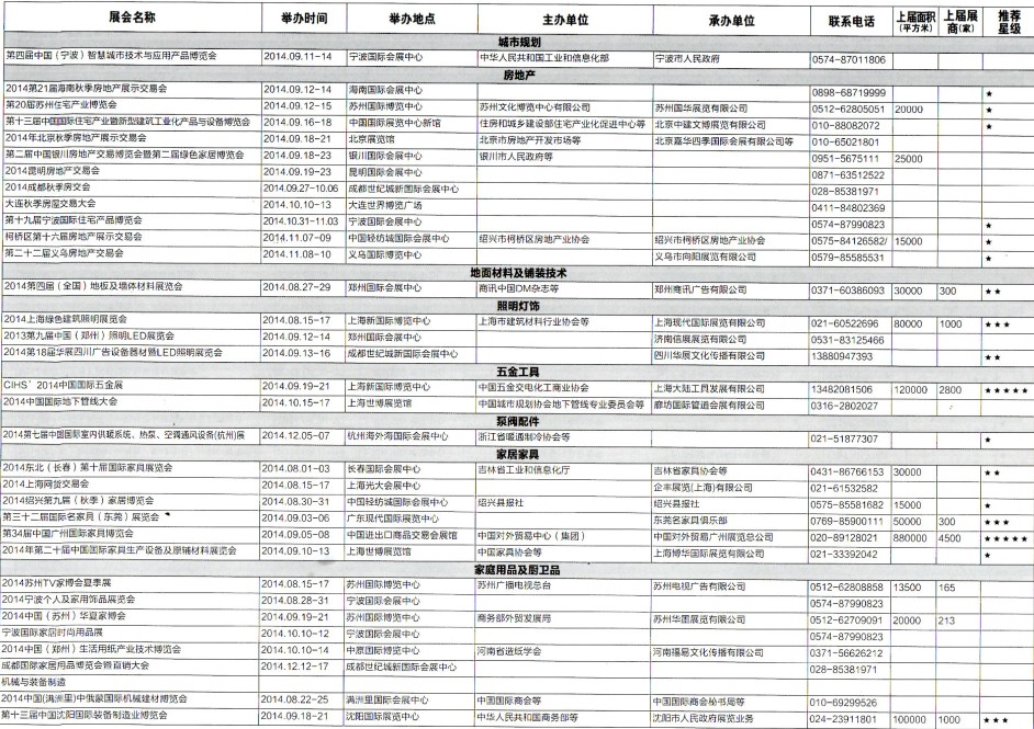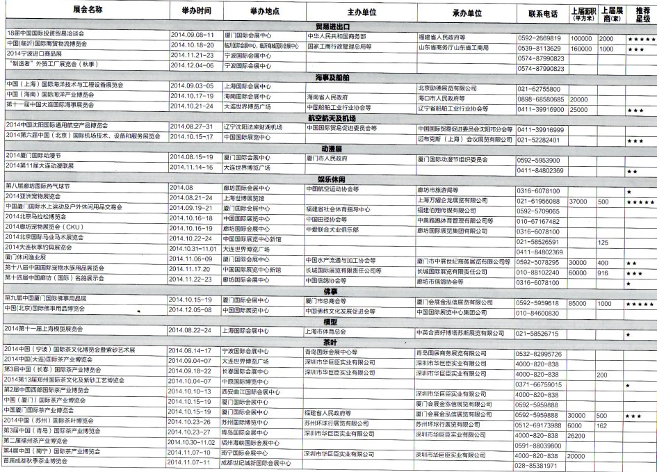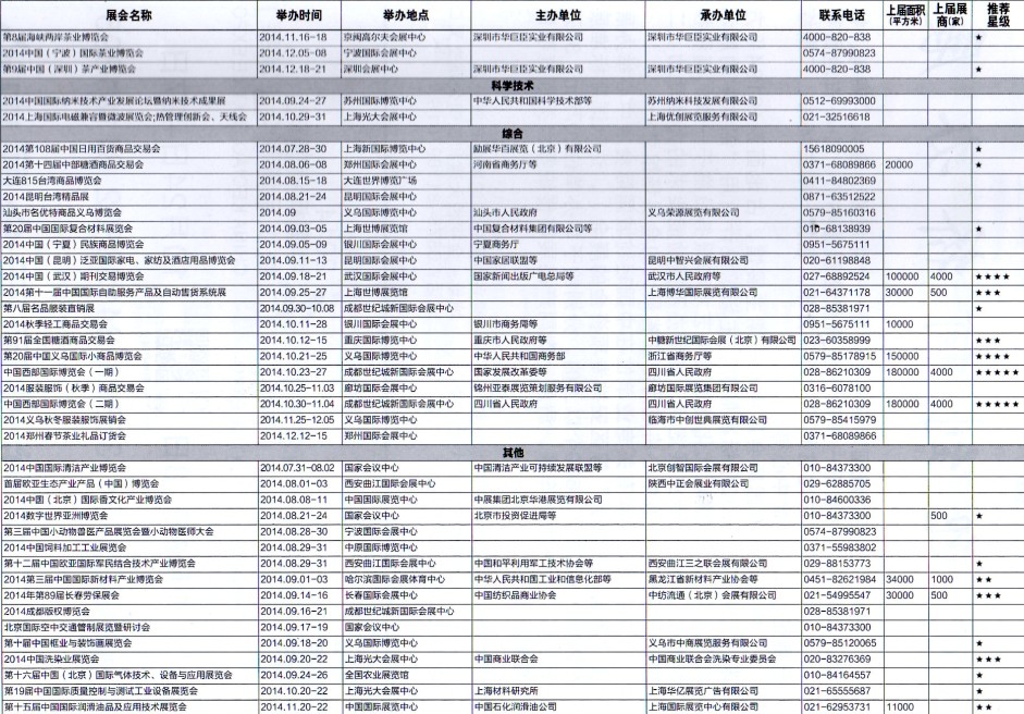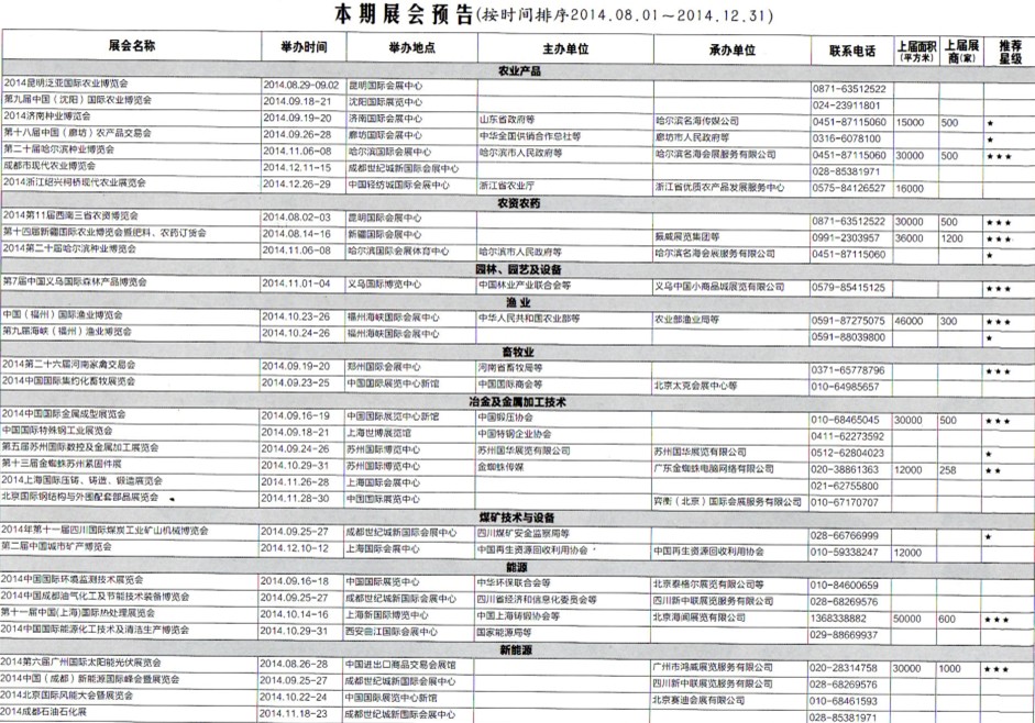 2014年8月至12月全國最全展覽會時間排期表