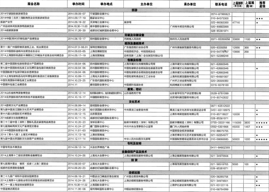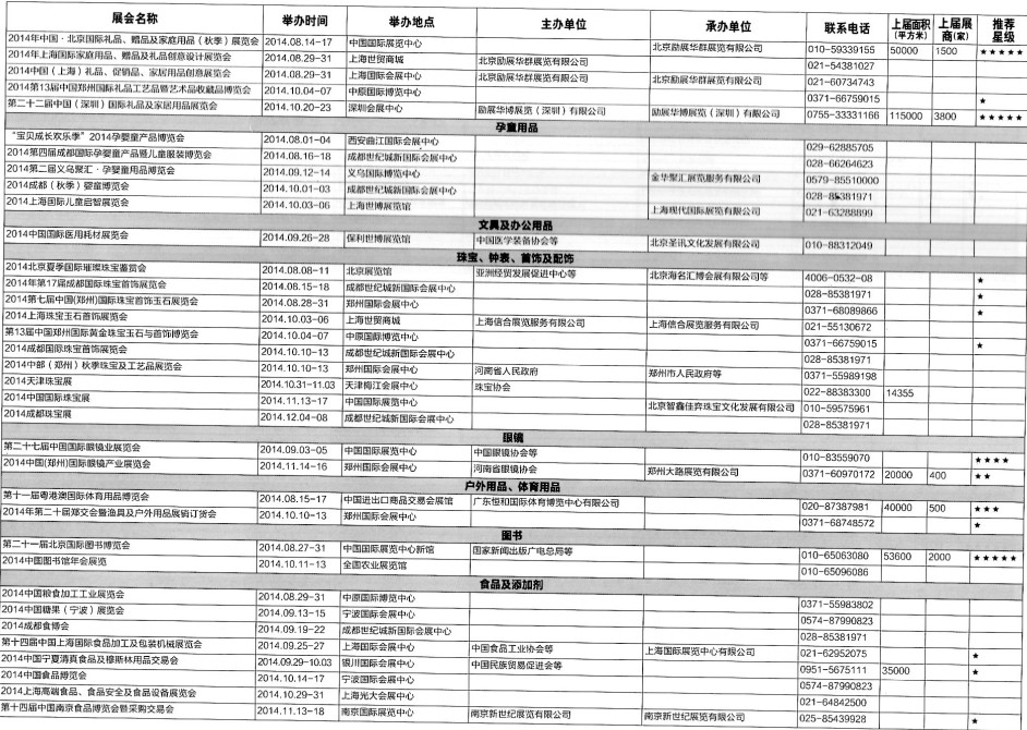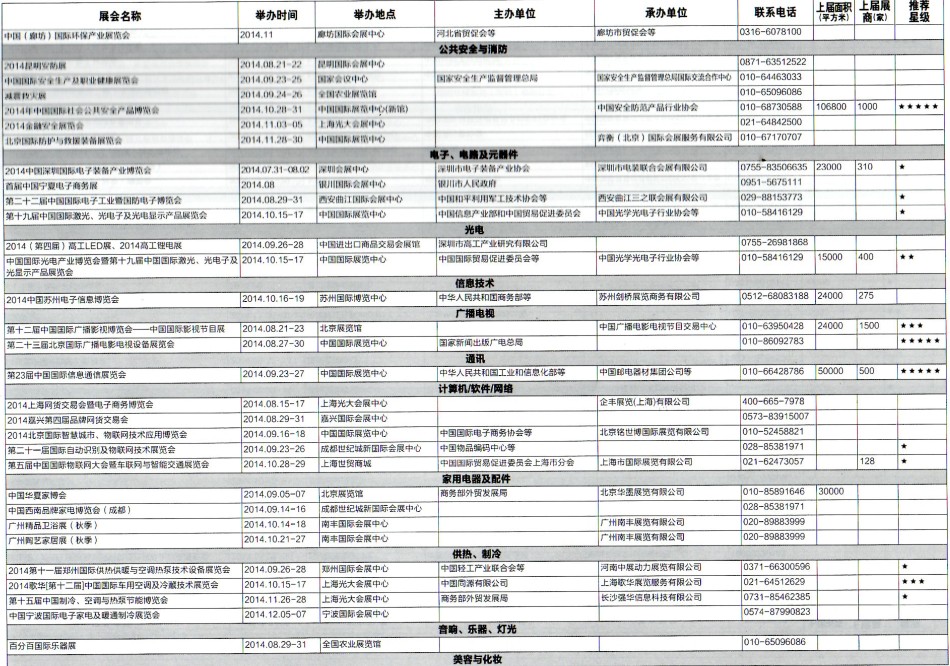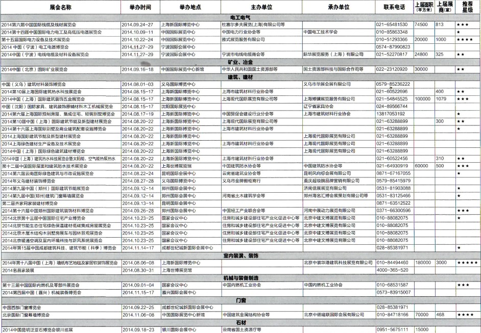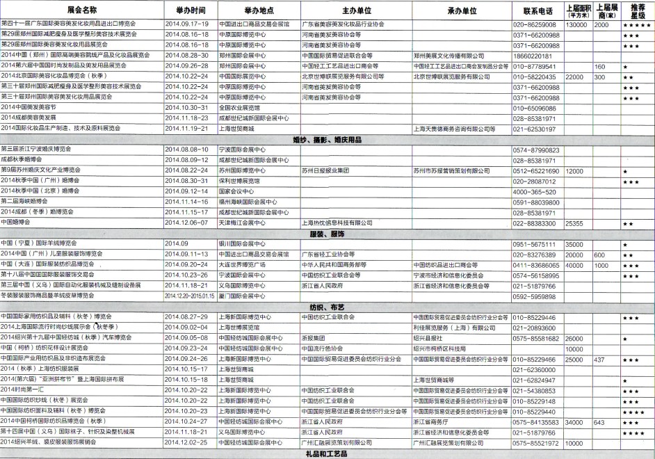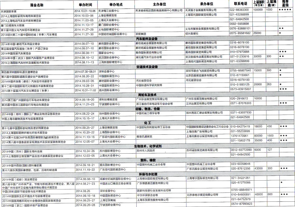 2014年8月至12月全國最全展覽會時間排期表