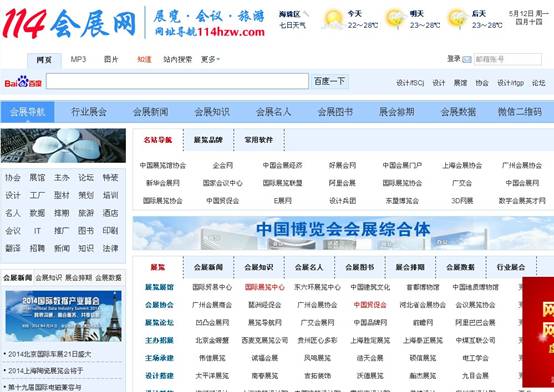 114會展網(wǎng)則是致力于打造全國最全最專業(yè)的會展網(wǎng)址導(dǎo)航,打造會展業(yè)最具有權(quán)威的會展網(wǎng)址大全。這里信息量大,覆蓋面廣,提供論壇新聞、會議酒店、工廠學(xué)校、旅游娛樂、廣告宣傳等不同種類的會展信息,定能滿足您的一切需要。