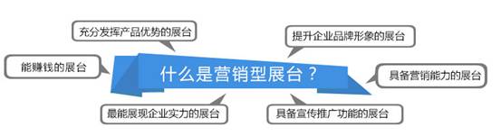 所謂的營銷型展臺是指具備營銷推廣功能的展臺,是指在設計時從參展企業(yè)參展目的出發(fā),不僅考慮外觀造型、產品展示、企業(yè)實力、功能布局等等,而且將視聽觸覺相結合,務使每一個環(huán)節(jié),每一步驟都考慮到營銷功能的需求,使展臺具備營銷功能和有利品牌推廣的特征。