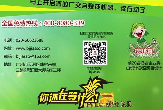 第116屆廣交會即將開始,為了提供給廣大新老客戶更好的服務(wù)和用戶體驗(yàn),畢加展覽于近期推出廣交會服務(wù)頁面,畢加順應(yīng)廣交會綠色發(fā)展計(jì)劃,遵守廣交會綠色特裝展位標(biāo)準(zhǔn),并以此全國首家推出綠色環(huán)保展臺,希望以此為廣交會參展商提供更為專業(yè),更為周到的服務(wù)。詳情請點(diǎn)擊:廣交會綠色環(huán)保展臺