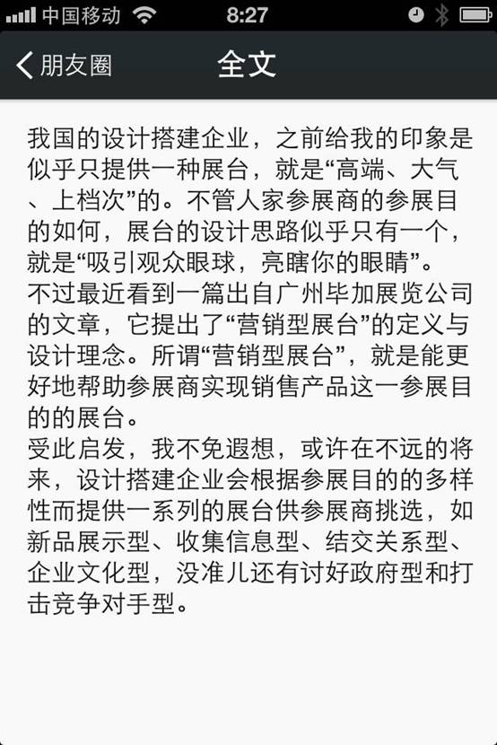 何為營銷型展臺?營銷型展臺是指具備營銷推廣功能的展臺,是指在設計時從參展企業(yè)參展目的出發(fā),不僅考慮外觀造型、產(chǎn)品展示、企業(yè)實力、功能布局等等,而且將視聽觸覺相結(jié)合,務使每一個環(huán)節(jié),每一步驟都考慮到營銷功能的需求,使展臺具備營銷功能和有利品牌推廣的特征。營銷型展臺具備傳統(tǒng)展臺無法比擬的優(yōu)勢,其改變了傳統(tǒng)展會企業(yè)參展模式,會設定展會目標客戶群體,針對展會潛在目標客戶群體的習慣以及需求思維,站在潛在客戶的角度在展會中展示其感興趣的內(nèi)容,進而塑造企業(yè)品牌形象。手段包括核心產(chǎn)品展示,為潛在目標客戶答疑等,通過一系列營銷方式,獲得銷售線索,最終達成交易。簡單的講,企業(yè)營銷型展臺就是企業(yè)的銷售平臺,無論展會中直接交易與否,都能夠獲得銷售線索。營銷型展臺就是為了獲得銷售機會甚至獲得成交。