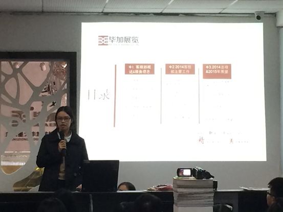 2014年12月6日,在畢加展覽廣州總部業(yè)務大廳舉行了畢加展覽2014年度總結暨2015年度計劃大會,會議由總經辦助理黎自平主持,全體畢加員工參加,各部門,各分公司負責人都上臺對本部門今年的成績和不足進行了總結,并在此基礎上對明年的目標進行了計劃。