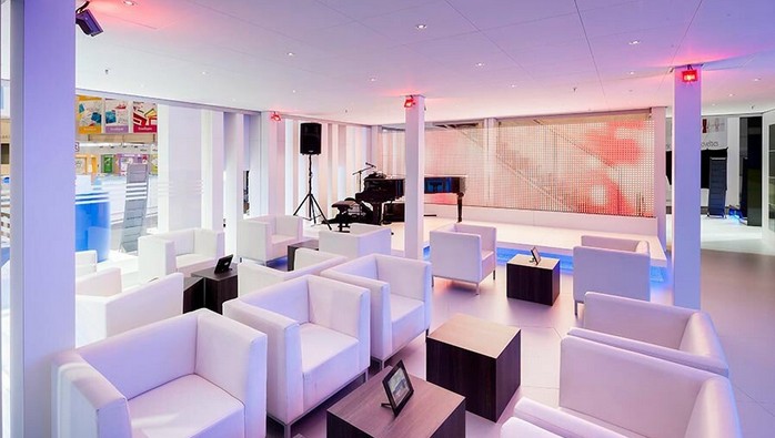 從平面安排上我們看到,一個功能齊全的展示空間多數(shù)要包含接待區(qū)、洽淡區(qū)、制作區(qū)、展區(qū)、庫房,有的還要有表演區(qū)、觀眾區(qū),這些不同功能的區(qū)域從整體風(fēng)格上應(yīng)該一致,從形式到材質(zhì)、顏色都應(yīng)是相互呼應(yīng)的。