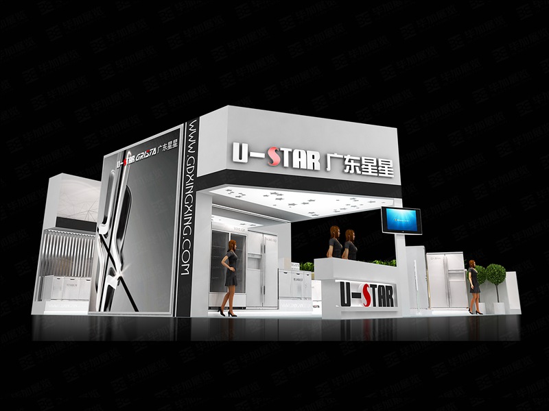 第一,平面視覺形式。在展會中人們總是以不停地移動,停止再移動的動靜結(jié)合方式來觀看展臺空間中的展品及從中接受信息的。在這個過程中,觀者的視線總是將遠處、近處、高處、低處、左邊到右邊的每一個位置、不同角度進行觀察和體會,在不同氛圍中身臨其境,全方位地觀看,從而更深入地了解展品和整個展示空間。這個過程中如何抓住他們的眼球,使其在較長時間內(nèi)在展品展區(qū)內(nèi)停留欣賞,這就要對平面視覺形式進行設(shè)計,目的是傳達產(chǎn)品信息和宣揚企業(yè)品牌形象。展會裝修設(shè)計中平面視覺形象包括有展板、展品、背景展墻、海報、圖形、文字、指示等形式,它們與整體形式的形態(tài)融合在一起,展現(xiàn)了展覽設(shè)計的無窮魅力,這里要強調(diào)的是設(shè)計時要注意文字和圖形的關(guān)系,注意各要素的和諧統(tǒng)一,呼應(yīng)主題。