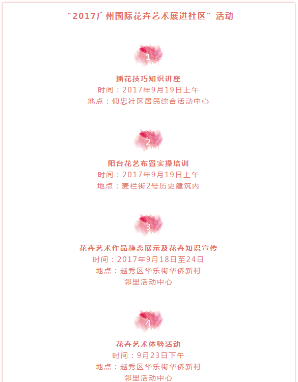 廣州市民花卉藝術(shù)作品展覽;國際花藝名師拜師會(huì);最美陽臺(tái)、最美花店評(píng)選;