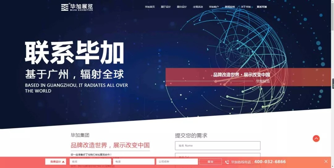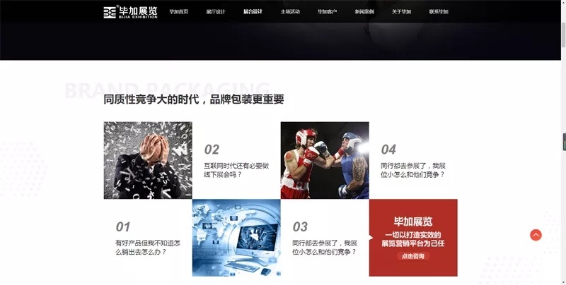 首頁中有合適的版塊幫助客戶對自身需求,快速進(jìn)入所需展廳、展臺(tái)、主場類型的詳情頁面,為解決客戶需求提供便利!每一個(gè)頁面的制作都是經(jīng)過精心設(shè)計(jì)的,以表達(dá)為主旨的設(shè)計(jì)理念,用智能化展示突破感官,以客戶的角度對網(wǎng)站進(jìn)行一個(gè)板塊式設(shè)計(jì),在給客戶帶來震撼效果的同時(shí),解決客戶的需求,達(dá)到最終營銷效果。