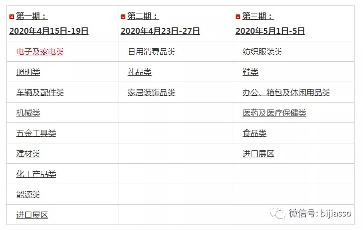 2020年第127屆中國(guó)進(jìn)出口商品交易會(huì)第一期舉辦類型包括“電子及家電類”、“照明類”、“車輛及配件類”、“機(jī)械類”、“五金工具類”、“建材類”、“化工產(chǎn)品類”、“能源類”。