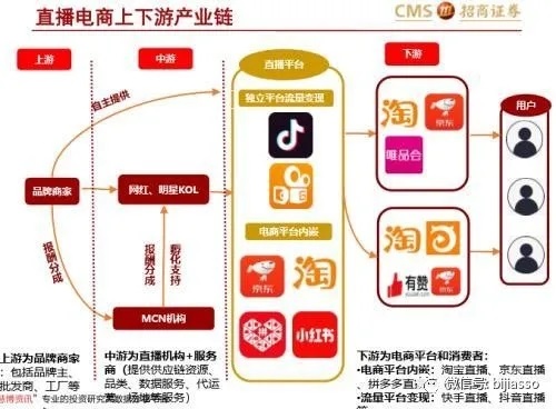 招商證券報告顯示,根據(jù)對產(chǎn)業(yè)鏈上下游及互聯(lián)網(wǎng)巨頭分析,直播電商作為電商代運營的一種方式,平臺最先受益 ,其次由于產(chǎn)業(yè)鏈上下游分散且充分競爭,具有供應(yīng)鏈優(yōu)勢、規(guī)模人設(shè)打造的MCN或?qū)俪觥?/span>