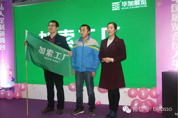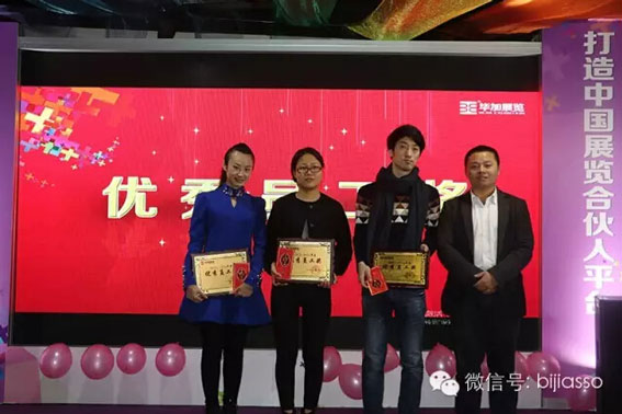 不要著急,還有三個最佳獎項,榮獲2015年度最佳創(chuàng)新獎的是加索工廠總經(jīng)理王春才,王廠在型材以及新型材料的應用摸索上,放眼全公司,亦或是戴總易總,他們都沒有這方面的經(jīng)驗,所以王廠無論實在推廣型材創(chuàng)新,新型材料的發(fā)展及應用上面都是第一人,創(chuàng)造了很多新的運用方法和技巧。型材必定是展覽行業(yè)的趨勢,在王廠的悉心經(jīng)營下,越來越多展商找到了我們要求進行型材搭建;