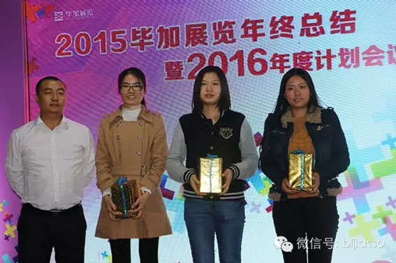 有業(yè)務部肯定少不了設計部,設計大神們你們真的準備好了嗎?2015年度榮獲畢加展覽設計業(yè)績冠軍獎的是我們的創(chuàng)意設計師郭靖莉。在2015年的努力下,小郭定會在2016年變得更高大,2016年加油哦。