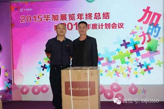 首先頒發(fā)畢加公司年度業(yè)務業(yè)績冠軍獎,毫無懸念2015年度業(yè)務業(yè)績冠軍獎的得主是業(yè)務二部經(jīng)理——杜少波