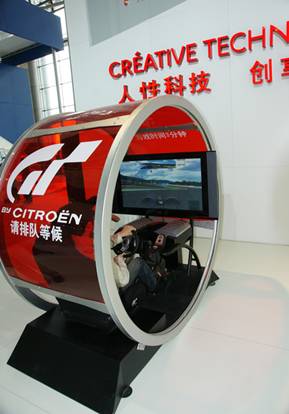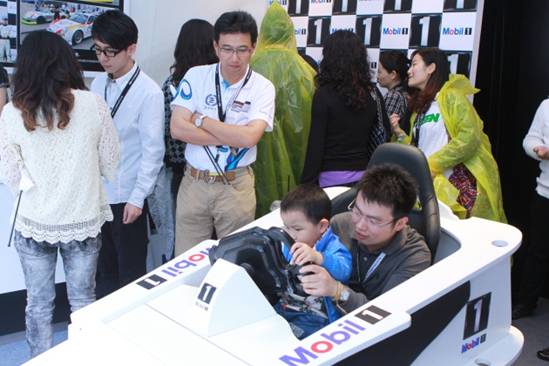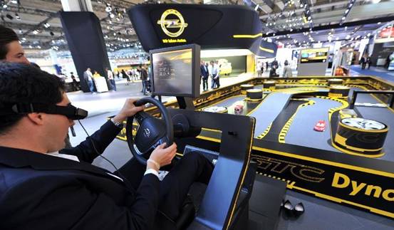 對于吸引觀眾進(jìn)入展臺參與互動體驗(yàn),車展上各家參展商可謂八仙過海各顯神通。比較常見的方式是在現(xiàn)場放置駕駛模擬機(jī),不過其中也各不相同。有的展位放置的是一排駕駛模擬游戲機(jī),有的展位放置的是力反饋式的駕駛艙,有的是放上一輛車作為安全模擬駕駛器,最夸張的,是專門建了一個模擬駕駛機(jī)房。但是,這種互動體驗(yàn)留給觀眾的印象只是一種游戲,與在游戲機(jī)房玩并無多大實(shí)質(zhì)差別,而且對駕駛游戲不感興趣的觀眾也未必會參與。